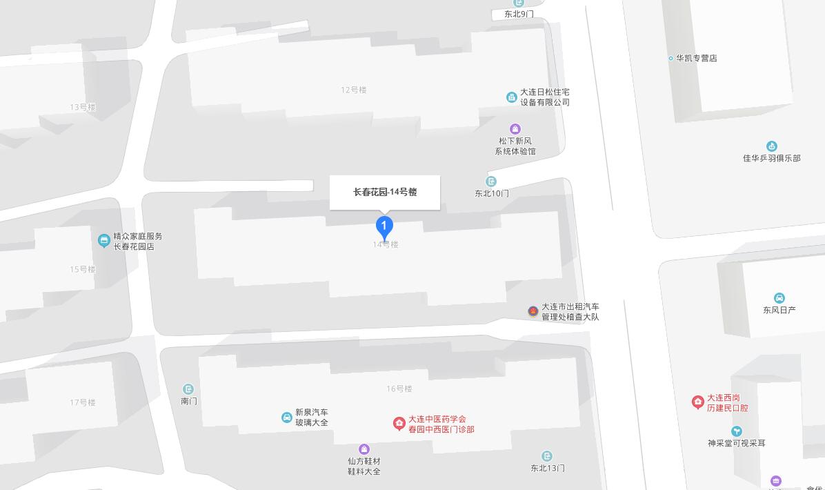 地址:大連市西崗區珠海街長春花園14號樓1-9公建