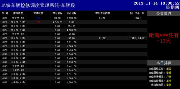 本系統的使用將極大提高地鐵檢修工作的工作效率,規范配件名稱,規范故障代碼,實現質量追溯和責任追溯,易于對員工、班組的工作量和工作難度進行統計,易于對車輛、車型的檢修信息進行統計,幫助領導掌握檢修業務的詳細信息,生成優化決策,提高效率和降低成本,簡化各業務環節的手工作業流程,降低統計錄入的工作量和錯誤率。